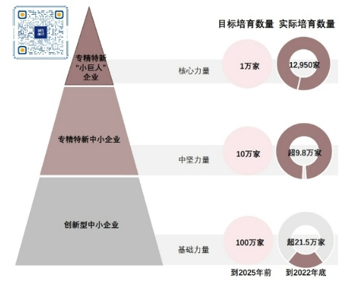 作為中小企業群體的領頭羊,專精特新中小企業是增強中國制造業核心競爭力的堅實支撐,在提升產業鏈供應鏈穩定性和安全性、推動經濟社會發展方面發揮著重要作用。近年來,中國培育了一大批專特精新中小企業,為推進產業基礎高級化、產業鏈現代化,增強制造業競爭優勢,構建新發展格局提供了有力支撐,也將成為未來推動形成更強創新力、更高附加值、更安全可控的產業鏈供應鏈的重要力量。