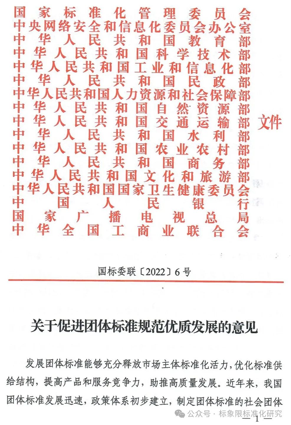 聯合印發《關于促進團體標準規范優質發展的意見》