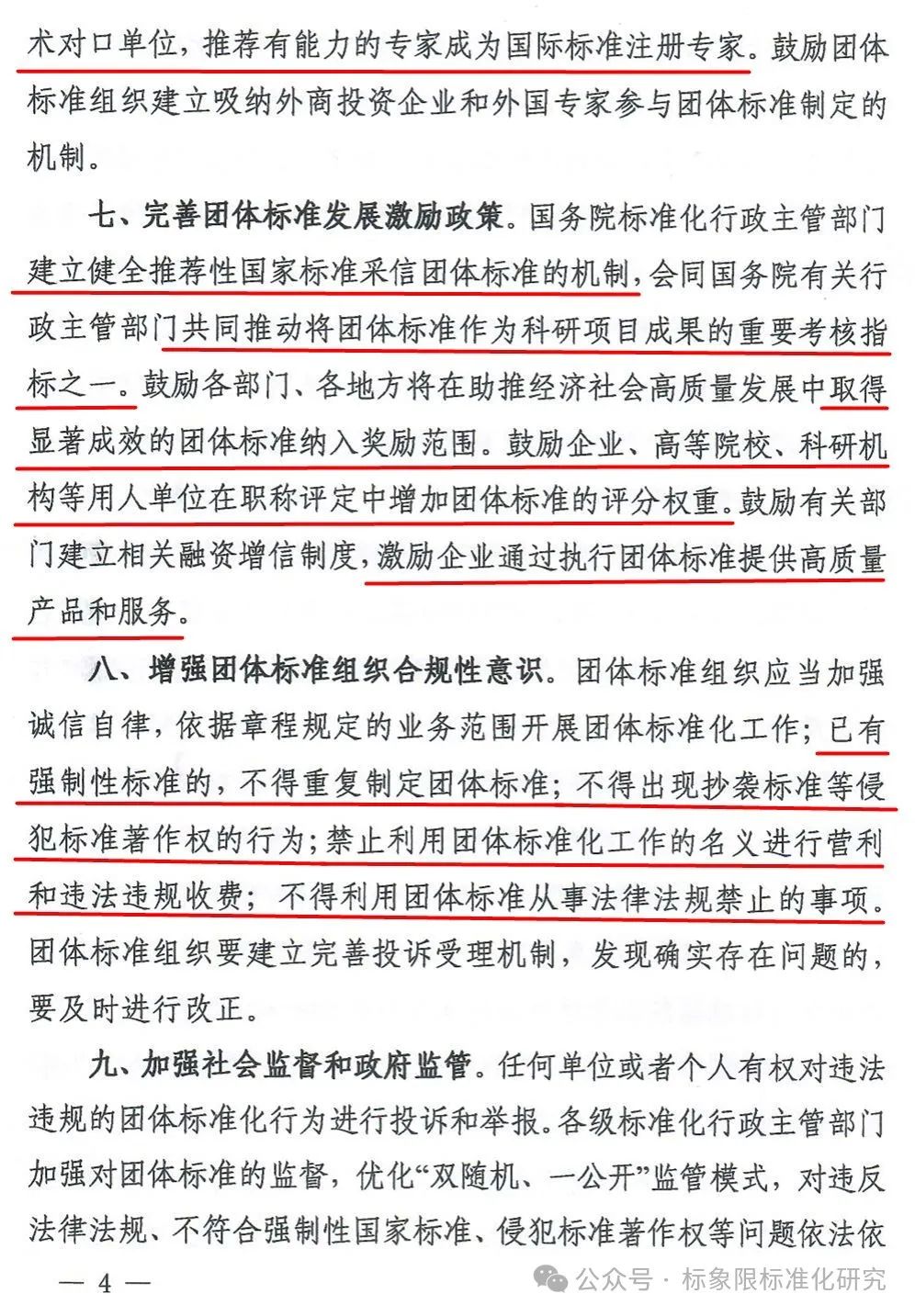《意見》強調,要促進團體標準優質發展。支持團體標準組織更加開放,鼓勵國際標準提案,建立機制進行國際合作。同時也要完善團體標準的激勵政策,將團體標準作為科研項目成果的重要考核指標,鼓勵用人單位增加在職稱評定中的團體標準評分權重。