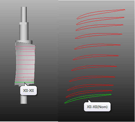 Ø 六點預定位,使掃描更加準確。在掃描葉型前,會預先在葉盆,葉背,前尾圓采6點,然后根據實際的葉型狀況,來調整葉型的掃描路徑(平移、旋轉,甚至縮緊或者擴張)。