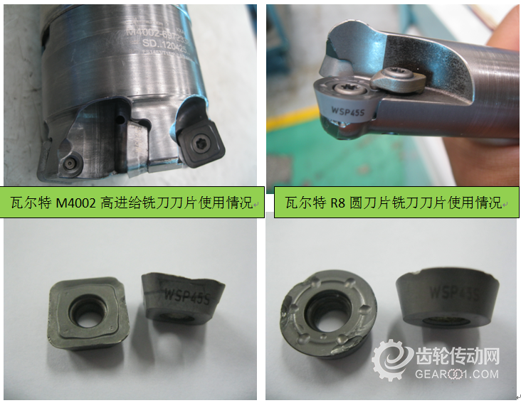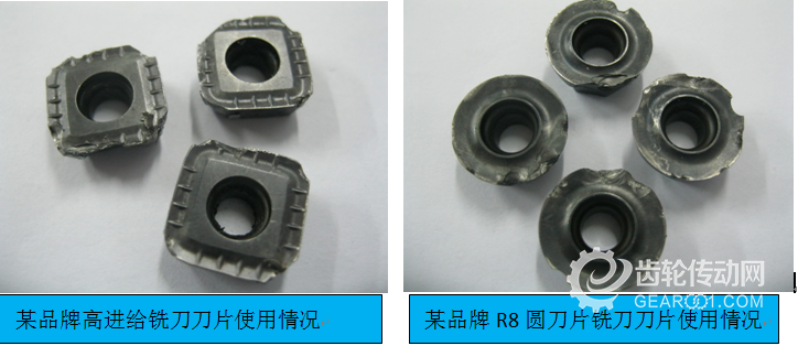 選擇的原則有了,按說(shuō),事情的進(jìn)展應(yīng)該一帆風(fēng)順;不料,事實(shí)卻并非如此:結(jié)合公司數(shù)控設(shè)備的現(xiàn)狀,我們最初選用了某知名品牌可轉(zhuǎn)位硬質(zhì)合金涂層刀具,并按其推薦的切削參數(shù)進(jìn)行加工。然而,結(jié)果卻不盡人意——由于零件來(lái)料狀態(tài)為模鍛件,表面有熱處理氧化層,且余量分布不均勻,加工時(shí)刀片磨損嚴(yán)重,加工不到2小時(shí)刀具就產(chǎn)生不同程度的磨損及崩刃現(xiàn)象,無(wú)法滿足批量生產(chǎn)的加工需求。這種情況的出現(xiàn),讓難題的破解一時(shí)陷入僵局。