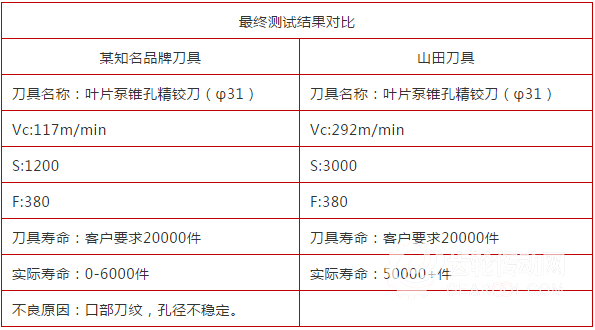 客戶目前使用多個知名品牌刀具均出現孔徑發黑,孔口刀紋,粗糙度不良,孔徑不穩定等不良問題,導致刀具壽命不達標,換刀頻繁,報廢率增加,大大增加了客戶成本。