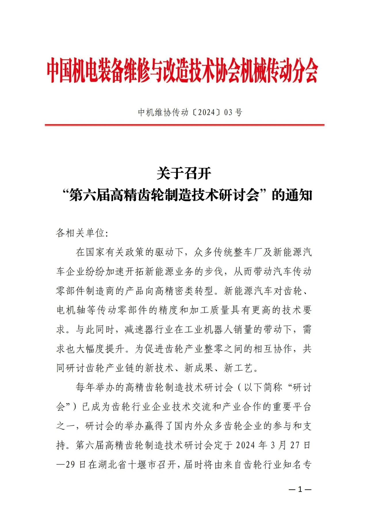 關于舉辦“第六屆高精齒輪制造技術研討會的通知”