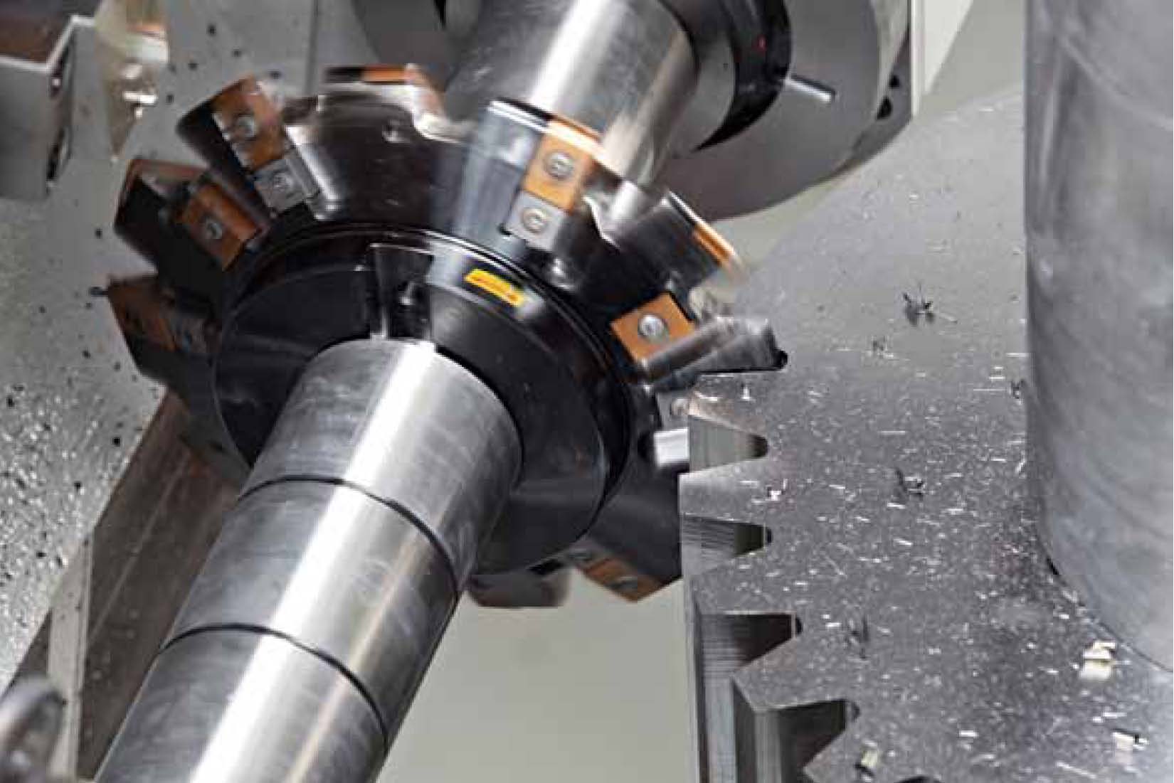 大模數齒輪。“大齒輪始終是我們開發(fā)可轉位齒輪工具生產線的重中之重,”Berardi說。主要是因為大齒輪刀具更加容易適合可轉位工具系統(tǒng)的應用。對于大齒輪來說,整體硬質合金通常成本過高,因此如果可行往往選擇使用可轉位硬質合金的解決方案。大齒輪用可轉位硬質合金代替高速鋼(HSS),可以大大地提高生產效率。