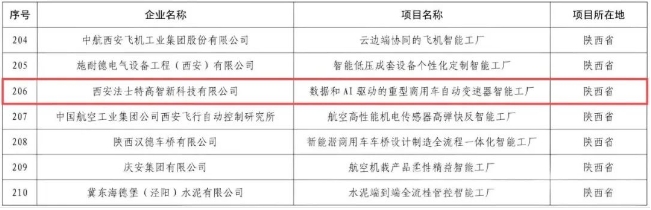 近日,國家工業(yè)和信息化部公示了235個入選卓越級智能工廠(第一批)項(xiàng)目公示名單,法士特高智新智慧工廠成功入選。