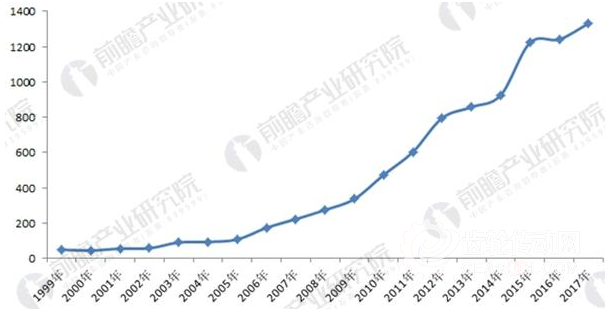 圖表2:1999-2017年汽車變速箱相關專利公開數量變化圖(單位:件)