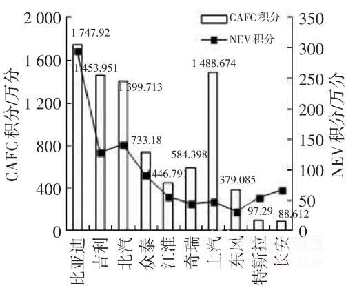 雙積分考核實施后,單純降低企業平均燃油消耗量已不能滿足要求。在 NEV 積分考核的逼迫下,企業必須自主生產技術含量高的新能源汽車才能贏取較高的 NEV 積分,另外生產新能源汽車對于降低 CAFC 值也可產生很大作用。