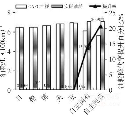 隨著動力總成技術挖掘接近極限 [16],同時適合傳統能源和新能源汽車的整車節能技術的潛力和有效性日漸突出,因此車企應重視輕量化技術研發,加快產品結構調整,使產品向小型化、輕量化方向發展,拉低企業平均油耗水平,形成應對油耗目標的研發能力。