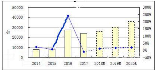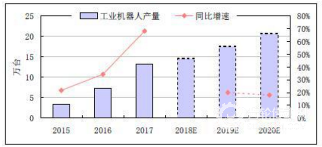 展望4季度,國內工業生產有望繼續保持穩中有進的發展趨勢,行業面臨的外部環境不會有明顯變化,工業機器人產量有望繼續小幅增長。初步預計2018年全年,工業機器人產量有望達到14.55萬套,同比增長11%左右。