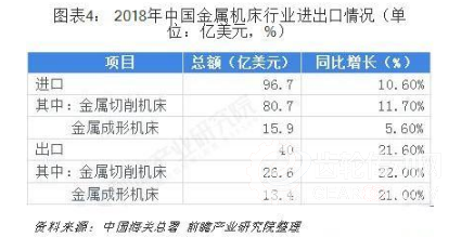 2018年金屬加工機床出口總額40.0億美元,同比增長21.6%。其中,金屬切削機床26.6億美元,同比增長22.0%;金屬成形機床13.4億美元,同比增長21.0%。無論是金屬切削機床還是金屬成形機床,出口總額均達到了2001年以來的最高水平。