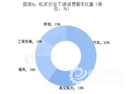 通過對機床市場規模分析,從數控機床行業下游消費需求比重來看,汽車是主要的下游需求領域,消費占比約為42%;其次是航空航天,消費比重約為18%;模具和工程機械分別為數控機械第三和第四消費領域,占比分別在15%和10%左右。