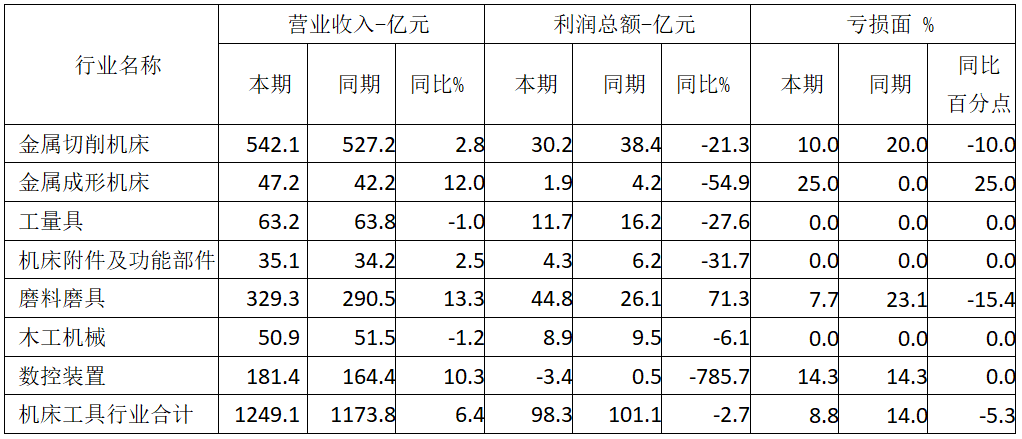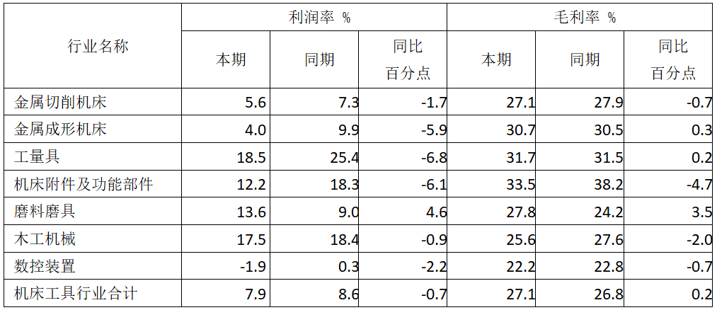 從各分行業營業收入和利潤總額的同比變動情況看,僅磨料磨具分行業的營業收入和利潤總額均保持增長;工量具和木工機械的營業收入和利潤總額均呈現下降;其他分行業均為營業收入增長,而利潤總額下降。
