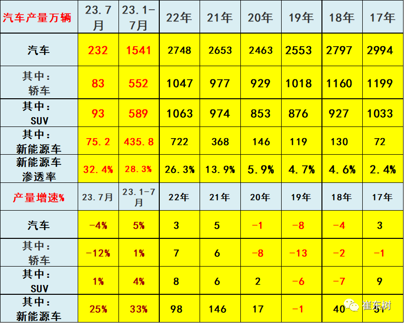 2023年7月汽車生產232萬臺,同比下降4%;新能源汽車生產75萬臺,同比增25%,滲透率32.4%,這是很高的增長。