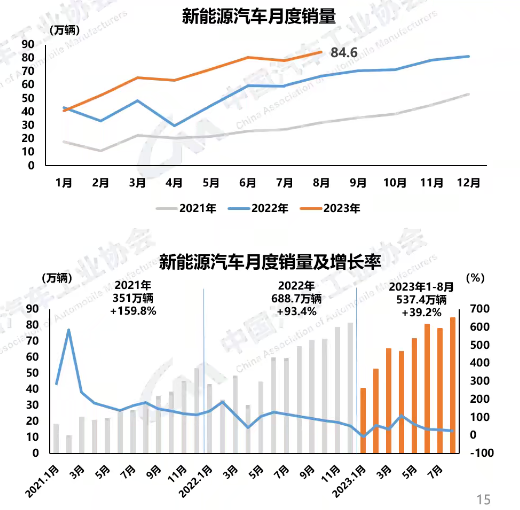 1-8月,新能源汽車產銷累計完成543.4萬輛和537.4萬輛,同比分別增長36.9%和39.2%,市場占有率達到29.5%。在新能源汽車主要品種中,與上年同期相比,三大類汽車產銷均呈較快增長。