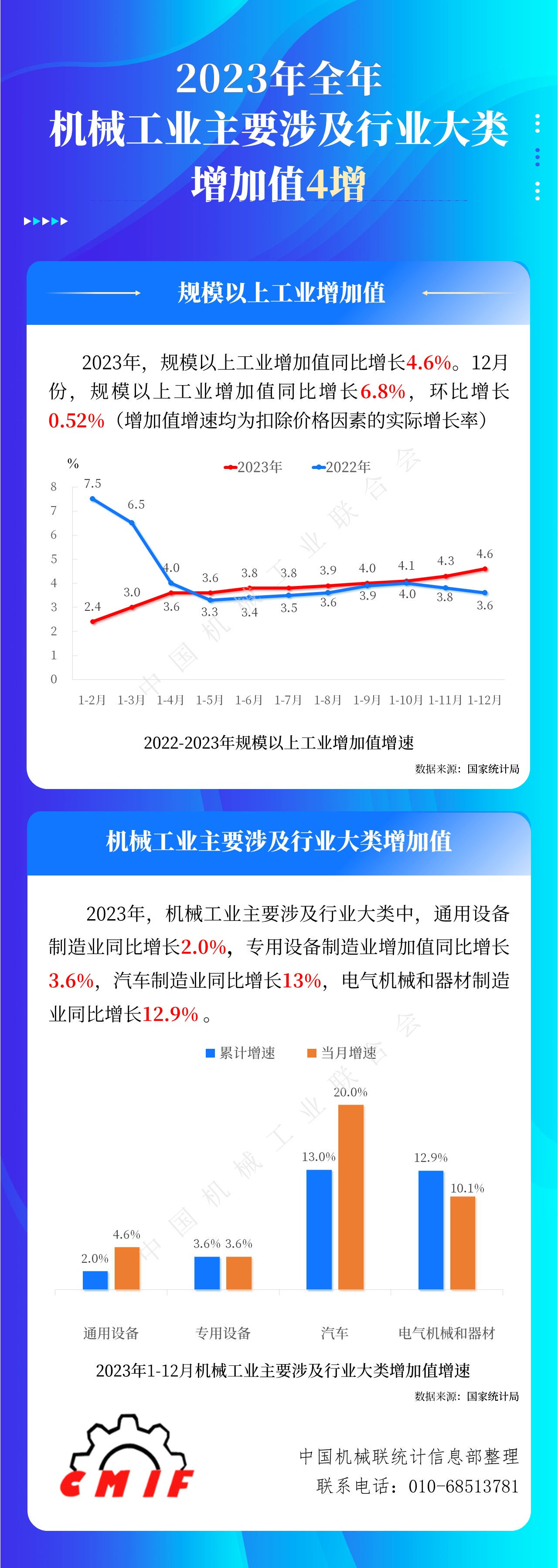 2023年全年機械工業主要涉及行業大類增加值4增