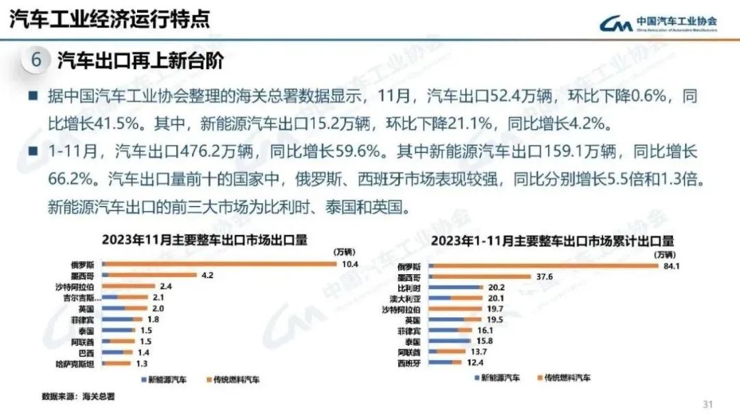 中汽協指出,2023年汽車出口的走高,一方面得益于中國車企抓住了俄羅斯等機會市場的機遇,另一方面,也是因為中國車企加快在歐洲等地區的布局。但中汽協副總工程師許海東表示,貿易出口只是汽車全球化發展的一部分,更重要的是海外主要市場直接生產。美國、日本、德國等國車企直接貿易出口并不多,對比之下,在汽車的全球化進程中,中國還是處于落后的情況下。