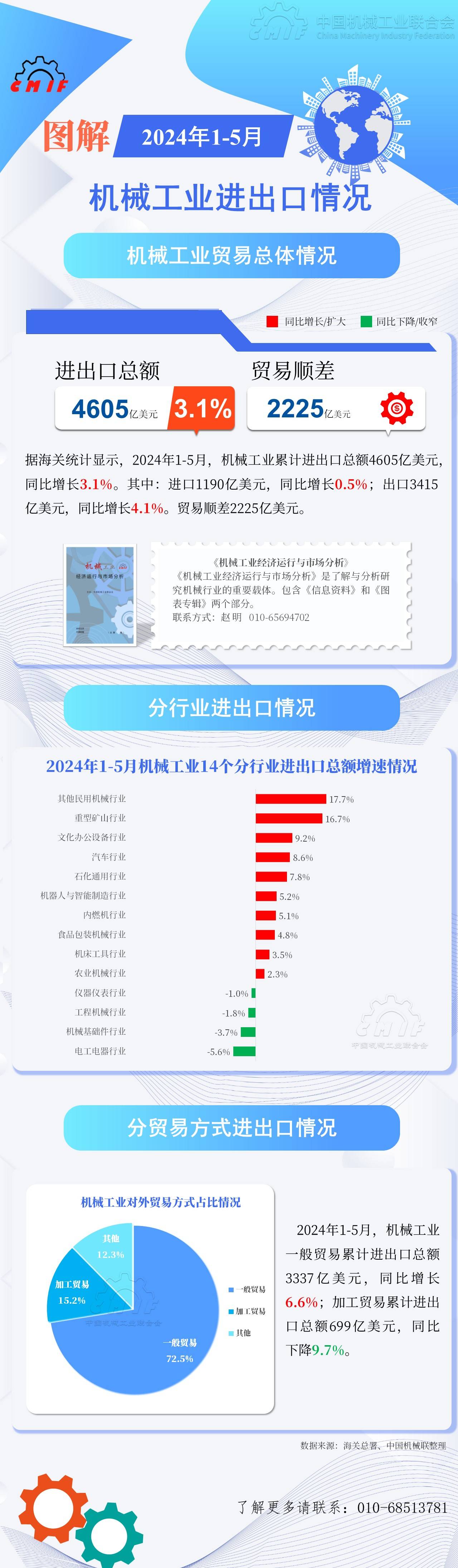 圖解2024年1-5月機械工業(yè)進出口情況。