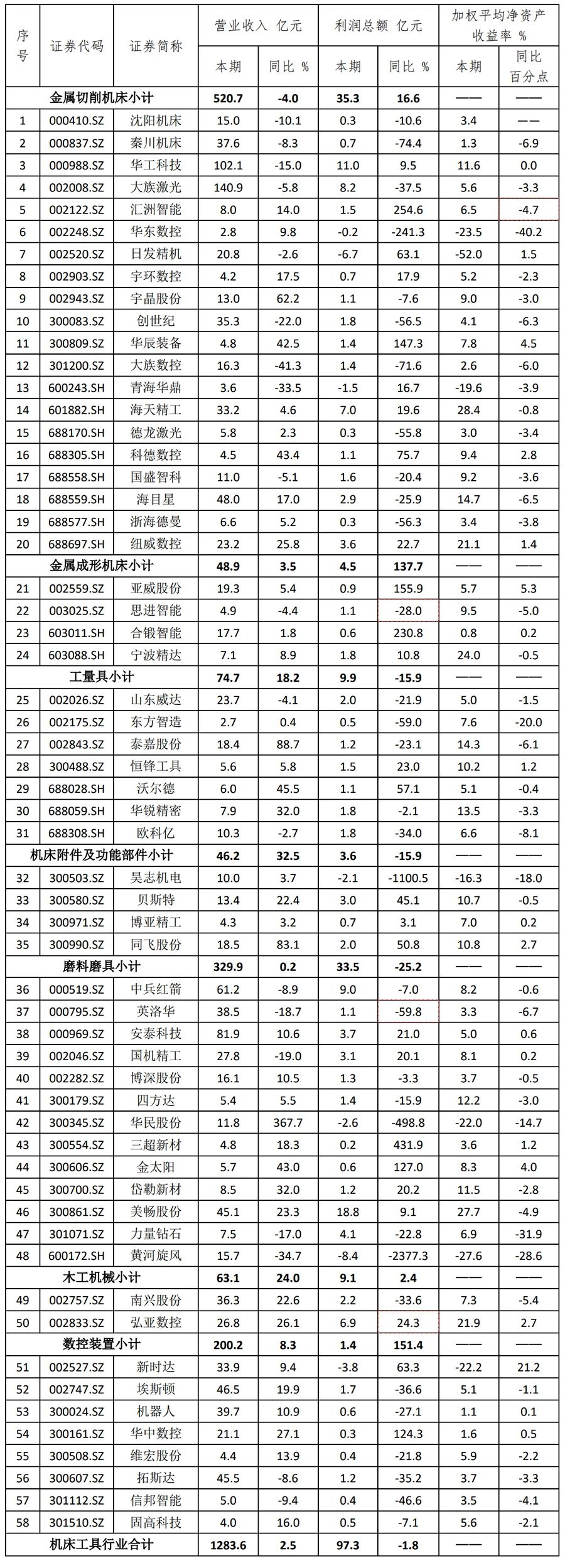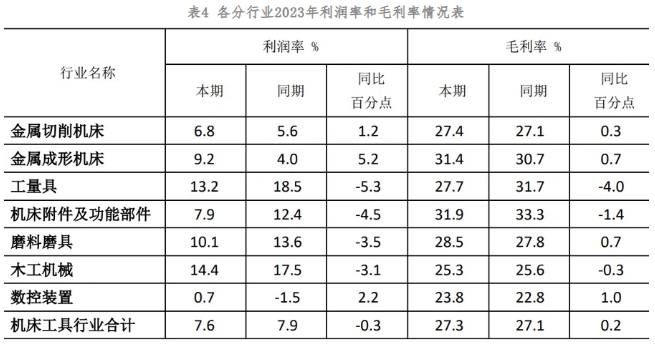 2023年度,機床工具行業受國際環境、地緣政治及下游裝備投資乏力等因素影響,整體面臨較大的經營壓力。行業上市公司部分經濟運行指標呈現下行,面臨著盈利能力下降、賬款回收難度大、訂單減少等壓力。但對比主要指標的同比變化情況,行業上市公司運行質量明顯好于行業整體水平,仍然是行業的優質企業群體。
