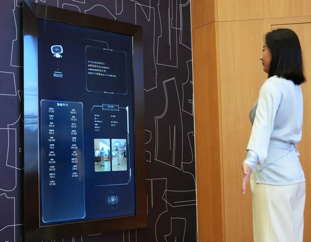 2024年7月5日,在酷特智能公司,“智能量體系統”通過人機語音交互,為一名用戶采集定制服裝所需的數據。(馬玉銘 攝)