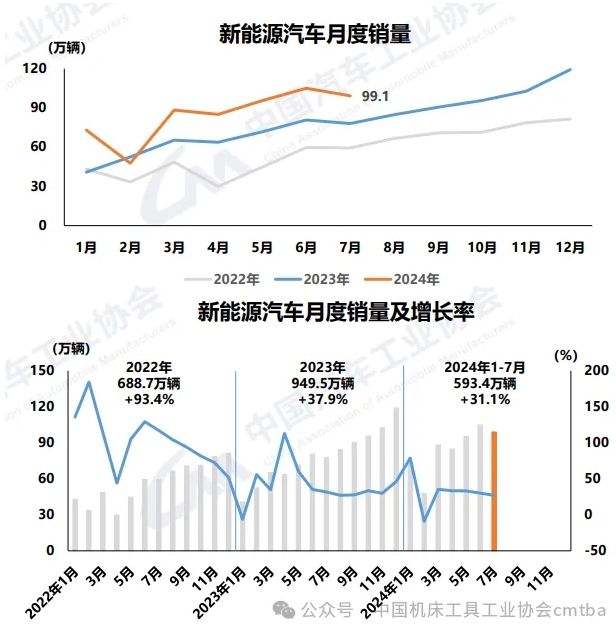 7月,新能源汽車(chē)產(chǎn)銷(xiāo)分別完成98.4萬(wàn)輛和99.1萬(wàn)輛,環(huán)比分別下降1.9%和5.6%,同比分別增長(zhǎng)22.3%和27%,新能源汽車(chē)新車(chē)銷(xiāo)量達(dá)到汽車(chē)新車(chē)總銷(xiāo)量的43.8%。在新能源汽車(chē)主要品種中,與上月相比,插電式混合動(dòng)力汽車(chē)產(chǎn)量微降、銷(xiāo)量微增,其他兩大類(lèi)新能源汽車(chē)品種產(chǎn)銷(xiāo)均呈不同程度下降;與上年同期相比,三大類(lèi)新能源汽車(chē)品種產(chǎn)銷(xiāo)均呈不同程度增長(zhǎng)。