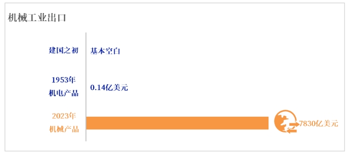 新中國成立初期,制造能力薄弱制約機械工業貿易發展,機械工業出口基本空白,1953年機電產品合計出口額僅0.14億美元。改革開放后,依托不斷夯實的產業基礎與持續提升的制造能力,機械工業全面融入全球產業分工體系。特別是進入新世紀以來,機械工業國際市場競爭力顯著提升,2006年首次實現貿易順差,2021年外貿進出口總額首次超過1萬億美元大關。2023年,機械工業出口總額達到7830億美元,實現貿易順差4785億美元,占全國貨物貿易順差的58.1%。