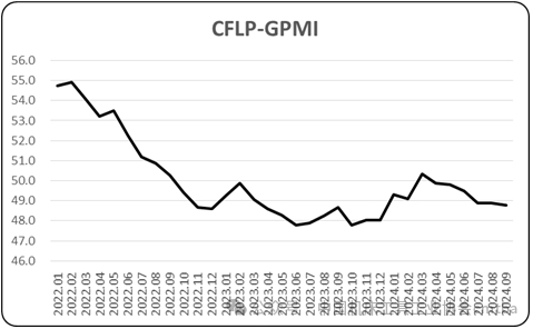 分區域看,9月份,歐洲制造業PMI為47.3%,較上月下降0.7個百分點。從歐洲制造業PMI走勢看,歐洲經濟恢復基礎不牢固,下行風險仍存,歐洲經濟仍面臨地緣政治沖突和區域內需求不足的壓力。9月份,美洲制造業PMI為47.8%,較上月上升0.2個百分點,但連續3個月在48%以下,意味著美洲制造業弱勢運行趨勢未變。