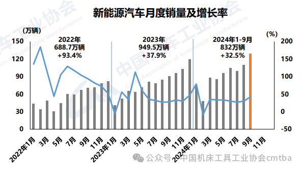 9月,新能源汽車延續(xù)快速增長(zhǎng)態(tài)勢(shì),月度產(chǎn)銷創(chuàng)歷史新高。當(dāng)月,新能源汽車產(chǎn)銷分別完成130.7萬(wàn)輛和128.7萬(wàn)輛,環(huán)比分別增長(zhǎng)19.7%和17%,同比分別增長(zhǎng)48.8%和42.3%,新能源汽車新車銷量達(dá)到汽車新車總銷量的45.8%。