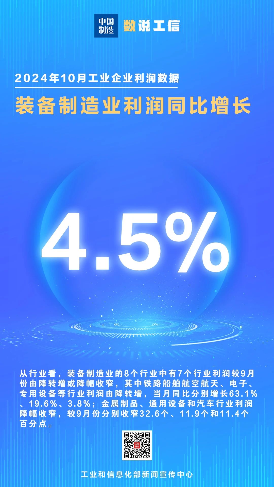 11月27日,國家統計局發布最新數據顯示,10月份,隨著存量政策及一攬子增量政策協同發力、持續顯效,規模以上工業企業生產穩定增長。其中,多數行業盈利較上月好轉,裝備制造業和高技術制造業等新動能支撐作用較強。