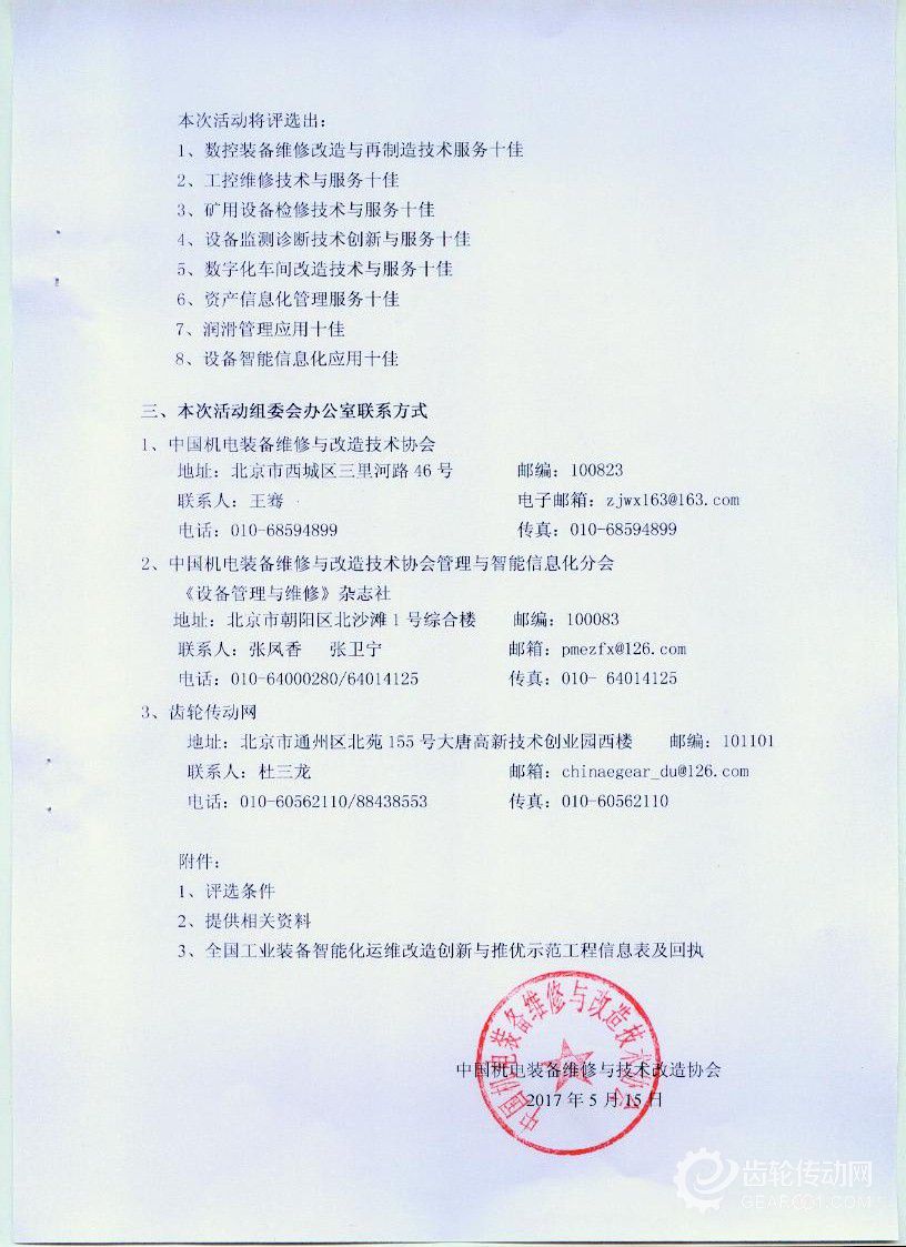 評(píng)選條件見附件,請(qǐng)將2017年7月6日前返回,評(píng)選結(jié)果出來后擬8月份召開頒獎(jiǎng)大會(huì)同時(shí)開展相關(guān)技術(shù)交流活動(dòng)(另發(fā)通知)。