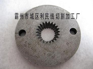 內齒齒輪的加工,一直是齒輪行業的一大難題,斜齒和錐齒的內齒輪加工難度就更大了,我廠將大錐度線切割加工技術與齒輪加工溶為一體,解決了上述難題,該產品當材料厚度在40毫米以內時,齒輪錐度可達到80°,且不受齒輪模數的限制,深受模具行業的好評和青睞。