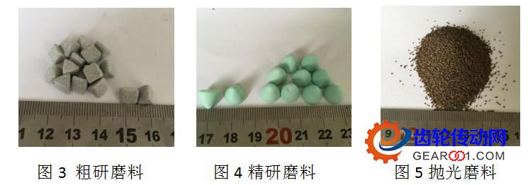 首先將齒輪放入裝有陶瓷磨料DBS6/6見圖3所示的缸桶內(nèi),進(jìn)行最初的粗研磨,使齒輪表面的粗糙度降低到Ra0.08-0.1um左右。