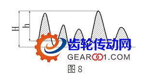 行星輪系傳動齒輪磨齒之后的表面從微觀的角度分析觀察,其表面仍由圖8 所示的波峰和波谷組成,通過齒表面的研磨和拋光可以消除尺寸為h的波峰,減小波峰和波谷的高度差。Δ=H-h從而使齒輪副在嚙合中,接觸的表面積增大,使齒輪的承載能力得到提高,更進(jìn)一步有利于齒輪在承載中實現(xiàn)均載,有效的提高了齒輪的使用壽命。